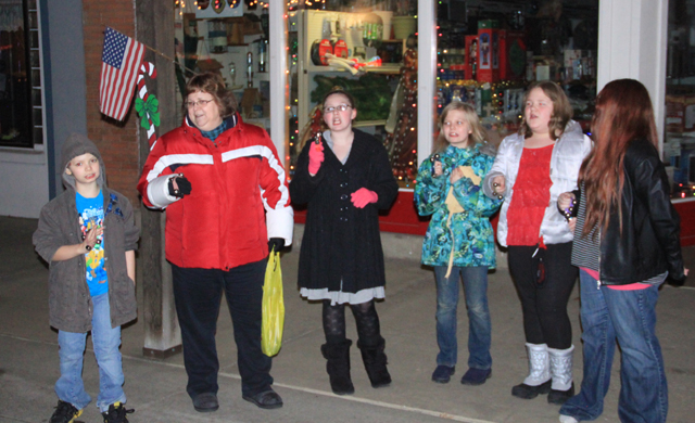 sang Christmas carols in front of Hoene Hardware prior to the parade. Click