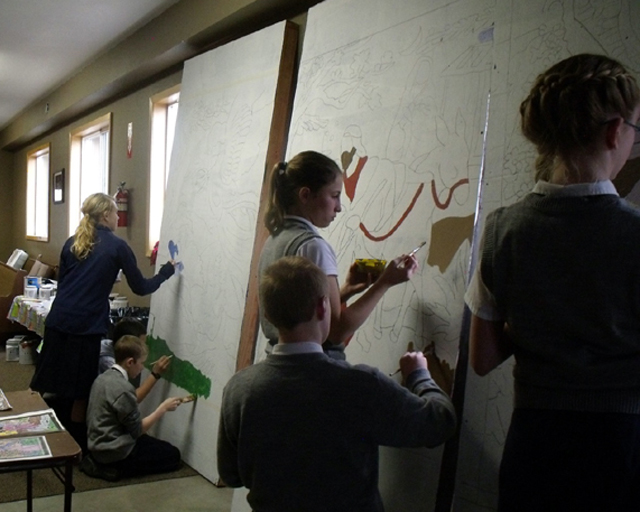 Summit students prepare the stage for "The Gift of