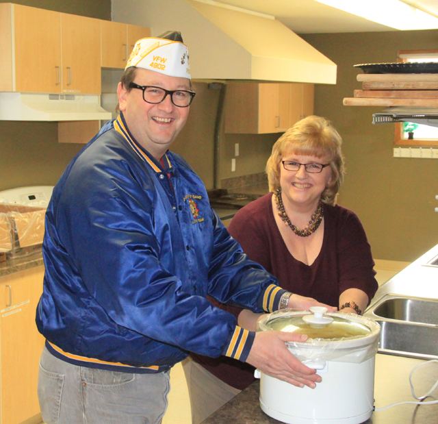 pot full of chicken noodle soup to Brenda Kaschmitter, co-chairman of the