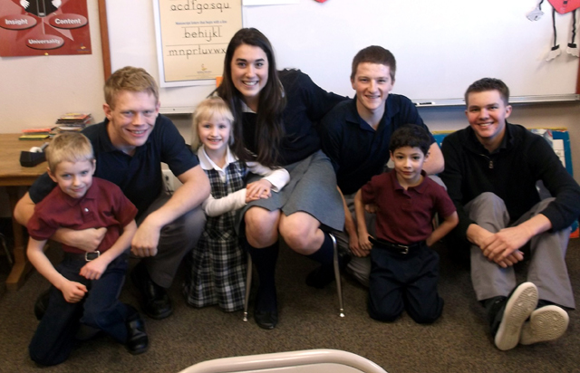 The Kindergarten class of Summit Academy hosted the Summit Senior Class of 2015 for lunch last Friday. The Kindergarteners recited poems, at pizza, and played “Capture the Flag” with the Seniors. It was a lot of fun! Photo provided by Summit Academy.