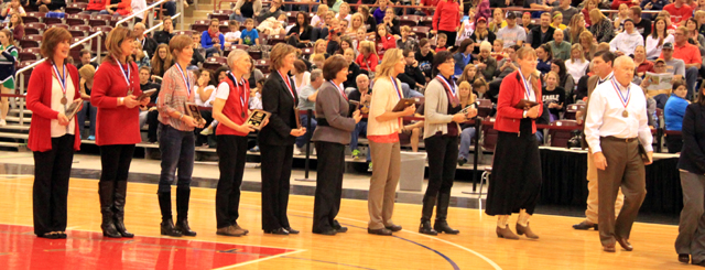 Susan Poxleitner, Denise Kuther, Brenda Hoene, Jeanene Arnzen and coach