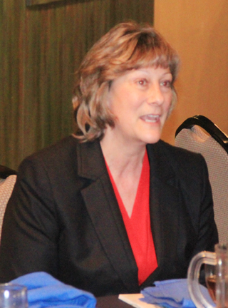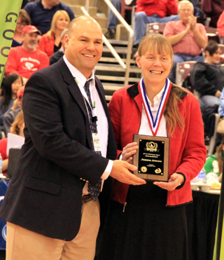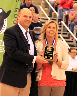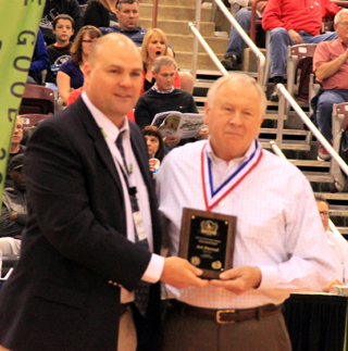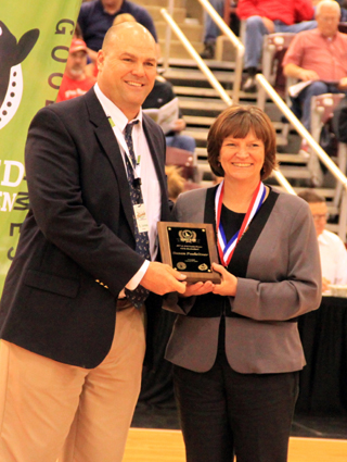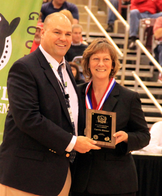 IHSAA officials and Cottonwood School Superintendent Rene’ Forsmann show the banner that the school will display for the Legends of the Game. For those concerned about the misspelled names on the banner, Forsmann hascontacted the IHSAA about getting them corrected.