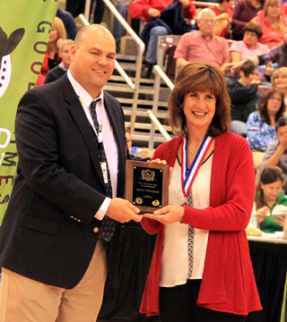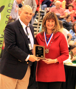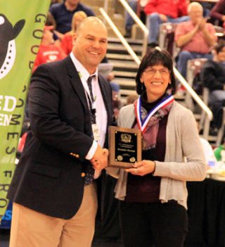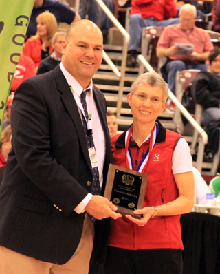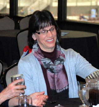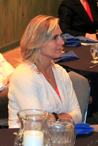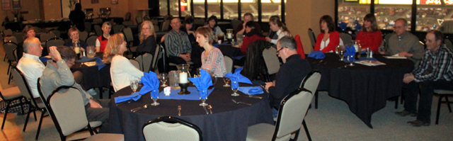 The team and coach with spouses and guests during the dinner in the Rodeo Club at the Idaho Center.