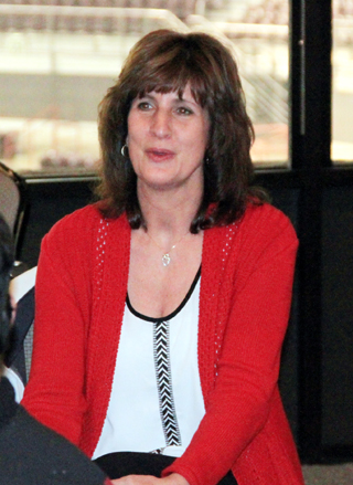 Nine of the sixteen players who played on the 1976 through 1978 Prairie girls teams were able to attend the Legends of the Game ceremonies Saturday evening at the Idaho Center. From left (with maiden names) are Della Uhlenkott, Carla Uhlenkott, Mary Tacke, Cindy Schultz, Susan Poxleitner, Denise Kuther, Brenda Hoene, Jeanene Arnzen and coach Art Dorval.