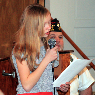 Mattie Lustig reads her winning Patriot’s Pen essay.