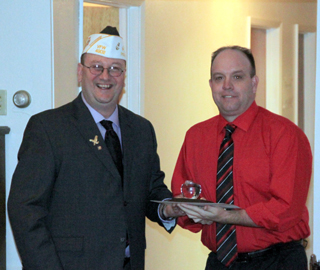 the year award. He is shown with VFW Post 4902 Commander Joe Riener.