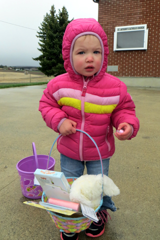 McKenzie, finds an egg at the Cottonwood Easter Egg Hunt Saturday. Click
