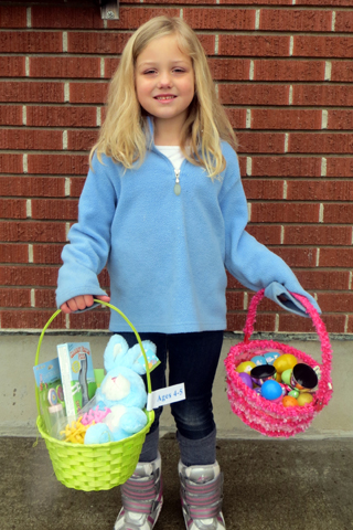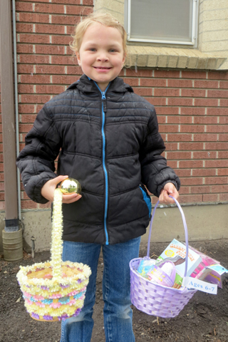 Easter Egg Hunt. Each got an Easter basket full of goodies. From top down