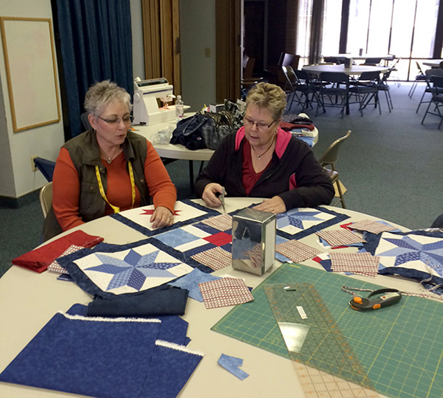 Debbie Stubbers and Lynn Sonnen work on Quilts of