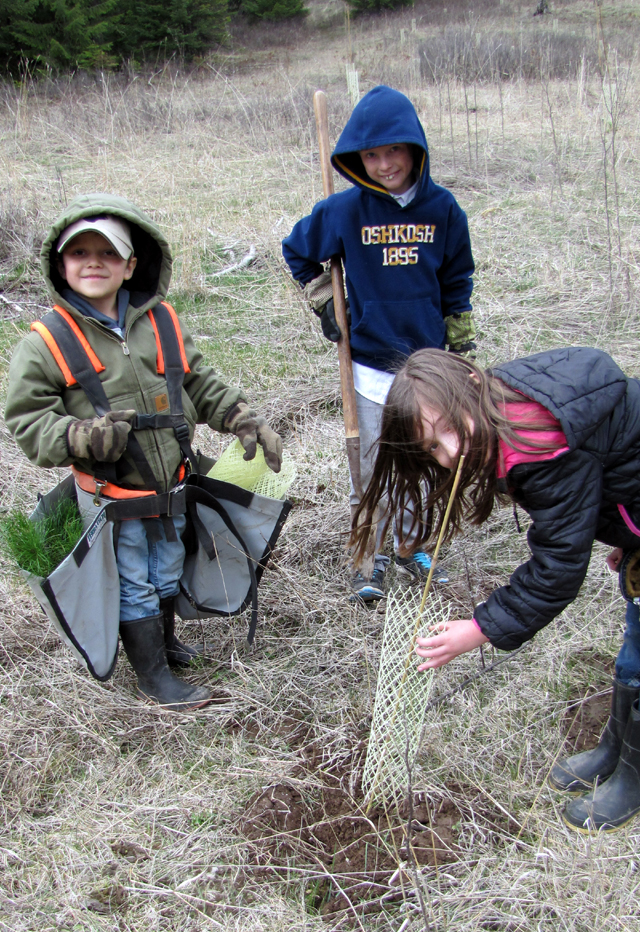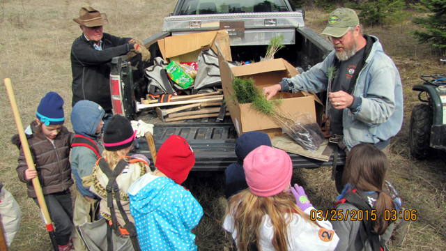 Clark Christiansen from Idaho Department of Lands teamed up with Summit Academy students to plant 150 trees for Arbor Day! Students from grades Kindergarten, 1st, and 2nd grade with the help of their teachers Mrs. Michelle Sonnen and Mrs. Kathy Rehder traveled to Cottonwood Butte to learn the proper planting of tree seedlings. Mr. Christensen showed the children how to plant trees and how to identify types of trees. Also assisting on the field trip were Virgil and Donna Wassmuth and Amy Rose. Photo provided by Summit Academy.