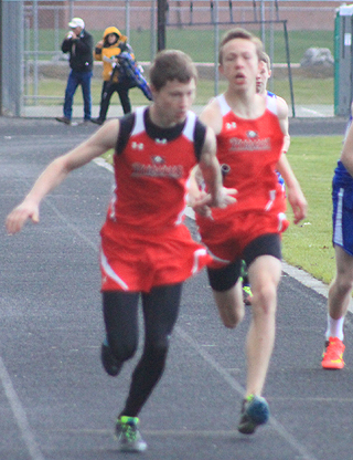 In a 14 school meet at Lapwai Thursday, April 9, Lucas Arnzen picked up a pair of wins while Mykaela McWilliams and Krystin Uhlenkott each won one event. Arnzen won the 200 in 23.57 and the 400 in 54.88. He also took second in the 100 meter dash in 11.52 and was the leadoff man for the winning 4x200 relay team. Arnzen, Mason Dalgliesh, Sean Spencer and Lucas Wemhoff won in a time of 1:41.17.