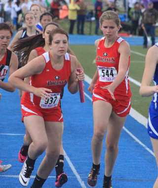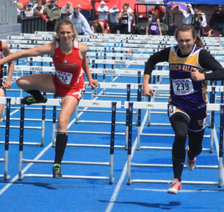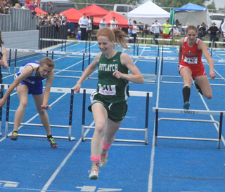 Prairie’s top finishers were Mykaela McWilliams in the 300 hurdles and the 4x400 relay team which each earned a second place finish. McWilliams took second in the 300 hurdles with a time of 48.83. She broke her own school record set last year at state with a 48.22 clocking in the prelims. She also broke Tabitha Sonnen’s school record of 15.75 in the 100 hurdles with a 15.64 clocking as she placed 3rd in that event. Sonnen’s record was set in 2007. The 4x400 team of Delaney Uhlenkott, Chaye Uptmor, Shayla VonBargen and McWilliams placed 2nd with a time of 4:20.83. Uptmor fought off the flu bug to earn a medal with a third place finish in the 800 with a time of 2:32.41. The illness got the better of her in the 1600 as she placed 15th with a time of 6:29.65 after running times right around 6 minutes all season. She came back though to gut out a strong leg in the 4x400. She scratched out of the 3200 on Friday. Uhlenkott also earned a medal with a fifth placed finish in the 400 with a time of 1:03.02. The 4x200 team of Uhlenkott, Nicole Poxleitner, VonBargen and McWilliams also earned a medal with a 5th place finish in 1:55.53. As a team the girls placed 7th with 36 points. Lucas Arnzen earned 2 medals in his 3 events as he placed 3rd in both the 200 meters and 400 meters. His 200 time was 23.78 and his 400 time was 51.67. He finished 8th in the 100 with a time of 11.69. Ryan Glimp finished 14th in the discus with a toss of 115’2”. As a team the boys were 17th with 13 points.