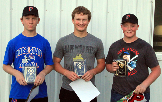 Baseball awards were also given out last Wednesday, May 27. From left are Devin Bruegeman, “Pete Rose” award, which pretty much equates to the MVP; Calvin Hinkelman, best hitter award and Derrick Arnzen, most improved. Basketball camp set The 2015 Camas Prairie Basketball Camp is set for July 6th-9th from 5:00-8:00 pm at Prairie School Gyms. It is intended for incoming 3rd-9th graders. Cost is $55.00 if registration is received by June 12th or $60.00 if registration is received after June 12th. For more information contact Tara Ross (gravescreek@q.com) or 962-7066 or Kim Schumacher (schumacherk@sd242.org) or 962-2402. |