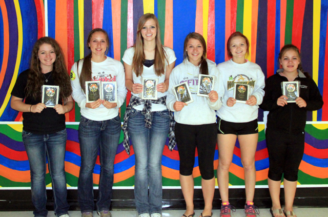 Softball awards were given out last Wednesday, May 27. From left are Faith Uhlenkott, defensive player of the year; Hailey Danly, offensive player of the year and most valuable; Holli Uhlorn, co-captain; Natasha Gimmeson, co-captain and most inspirational; Kellie Heitman, co-captain and Jayde Peery, most improved. |
