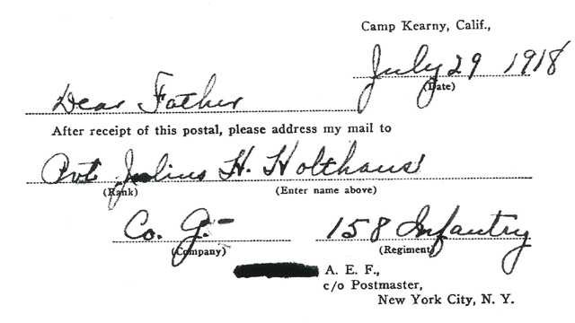 The photos below were provided by Clyde Cremer and are included in his book The Life and Times of a World War I Soldier: The Julius Holthaus Story. An article from Cremer about his book appeared in the May 21, 2015 edition of the Chronicle. The book can be ordered from iUniverse.com, Amazon.com or from Barnes & Noble. We still have several more photos that we will try to get into future Chronicles.