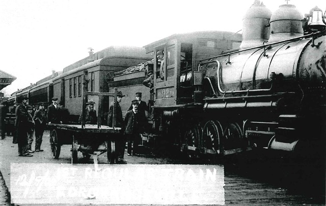 Steam locomotive and passenger cars belonging to the Camas Prairie Railroad-Grangeville, Idaho. This would be similar to the train the young men from the Prairie boarded in Grangeville as they left for training camps.