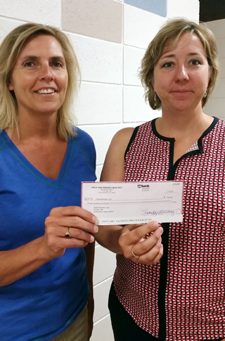 is Treasurer, Denise Uhlenkott accepting the recent donation from Brandy