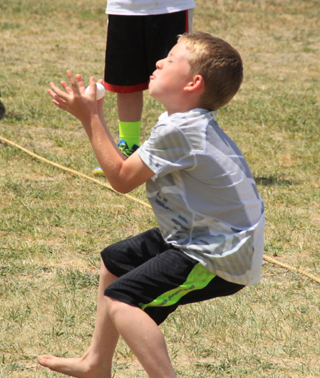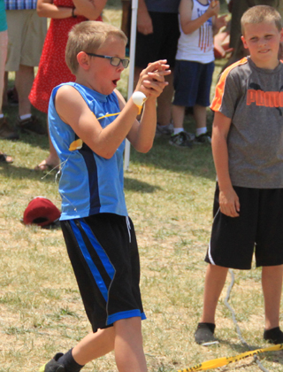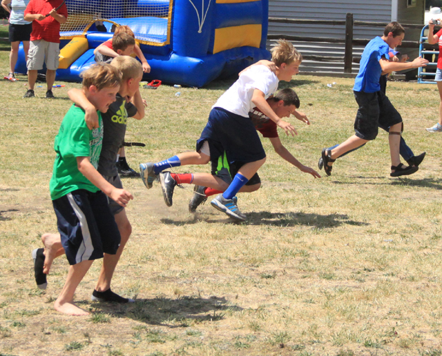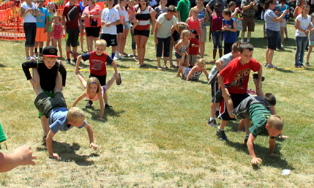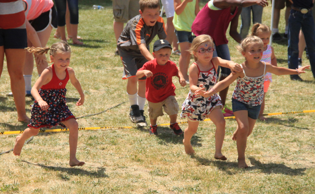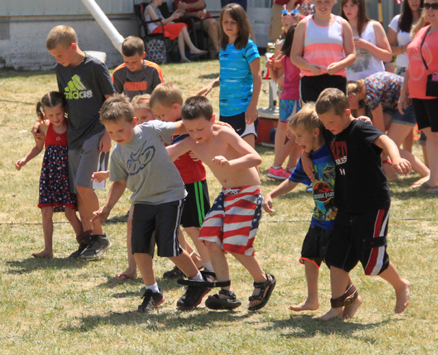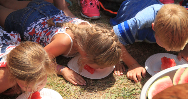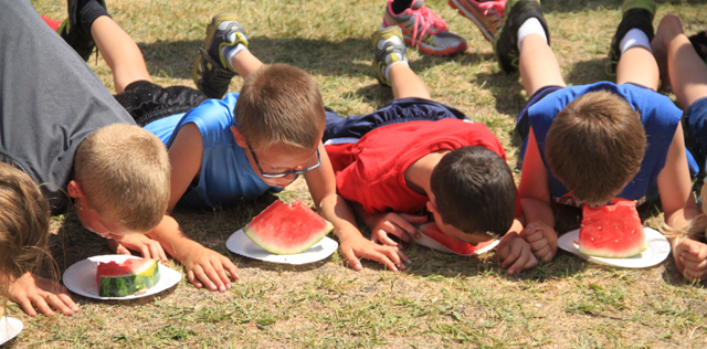 The second youngest group working their way to the rinds in the watermelon eating contest.