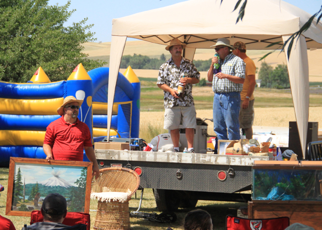 John Schumacher served as auctioneer while Tony Schumacher, Don Schumacher and Aaron Hinkelman helped spot bidders.