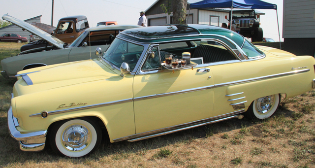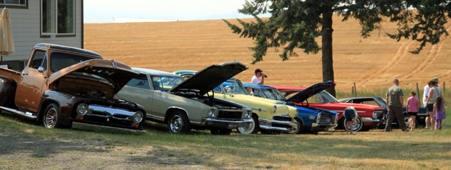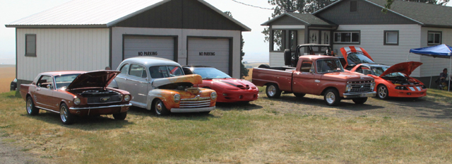 The Raspberry Festival Show and Shine returned after a hiatus with several beautifully restored vintage vehicles at the farmhouse across the road from the museum. The 46 Coupe, second from left in the upper photo, had a beautiful painting of a P-38 bomber on the trunk.