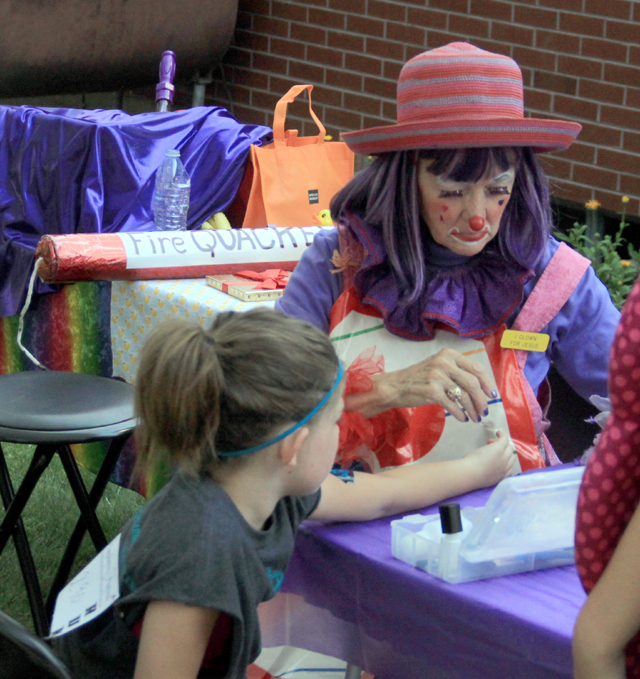Twinkie the Clown doubled as a body artist, painting temporary tattoos on some of the younger set.