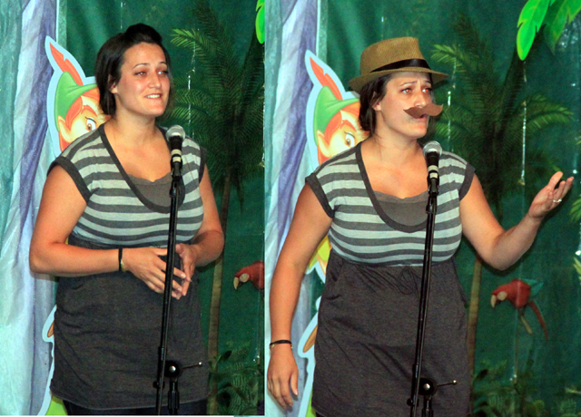 Shantal Schwartz won the 19 and over age group with what amounted to a duet with herself, adding the fedroa and moustache to do the male part of her song, "Think of Me."