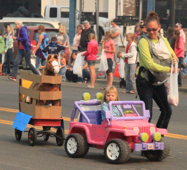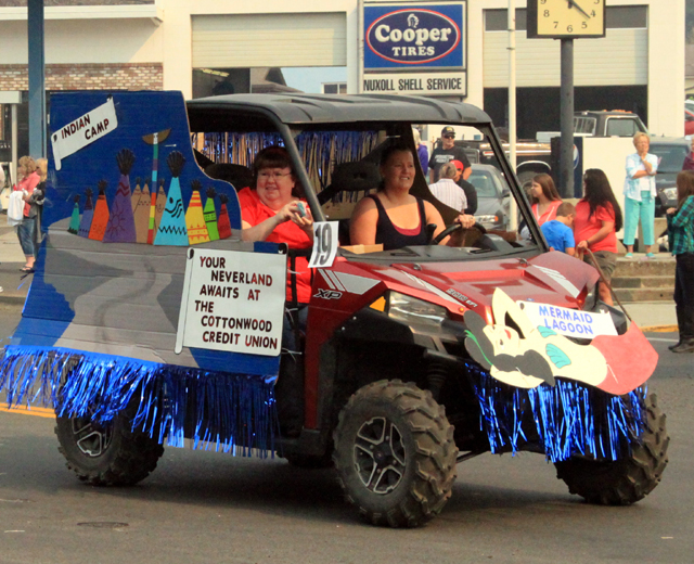 The Idaho County Fair Parade was held Saturday, August 22 on Main Street in Cottonwood. The Riggins Rodeo Royalty took first in the Royalty Division with the Lewis County Fair Royalty taking second and the Idaho County Fair Royalty third. The Cottonwood Riding Club entry was first in the Equestrian division with Cottonwood Saddliers 4-H Club taking 2nd. In the Non-profit or organizations division, the Clearwater Valley Go-Getters 4-H Club took first with the Honor Guard 2nd and the Back Country Horsemen third. In the Commercial division Cottonwood Credit Union was first with Arnzen Drug 2nd and Nuxoll Shell 3rd. There were over 40 entries in this year’s Parade. The Fair Board would like to thank everyone who entered the parade and also everyone who helped make it such a success. The Hangout allowed the use of their parking lot for the signup. Cheri Holthaus helped with signup and Pat Holthaus and Sheri Daly with announcing. Lynn Guyer, Ed Holthaus, NICI and Brian Davis helped with the lineup. The Lions Club donated use of their sound system. Hoene Hardware allowed hook-up of the sound system in front of their store. Bud’s Powersports loaned out the use of side-by-sides for the Fair Board to ride in and also for use at the fairgrounds. Finally the Prairie football team did the cleanup after the parade.