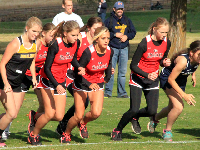 Prairie’s crosscountry runners at the start of the race. Chaye Uptmor, Kylie Tidwell and Leah Higgins are shown with Hope McIntire and Sydney Bruner behind them. In Prairie’s first crosscountry meet of the season and this first in almost 20 years that they’ve had their own program, Chaye Uptmor took second, Kylie Tidwell third and Leah Higgins 6th as the girls team placed second. Uptmor’s time over the 5K run at the Grangeville Golf Course Thursday, Sept. 3 was 23:40.77, 9 seconds behind the first place winner from Deary. Tidwell meanwhile was third in 24:20.13 and Higgins was 6th in 26:08.52. Hope McIntire placed 17th in 28:50.47 and Sydney Bruner was 23rd in 32:50.02. There were no boys results due to injury for one and not enough practices for the others. As a team Prairie scored 32 points, 6 behind Deary, who incidentally is coached by Gordon Heath, who coached the last Prairie crosscountry team back in the late 1990’s. There is a change on this week’s crosscountry meet as Prairie will be traveling to the Asotin Meet this Saturday instead of to Farragut State Park north of Coeur d’Alene. With 3 of the 5 girls committed to playing volleyball at Pomeroy on Saturday, coach Glenn Poxleitner felt it wasn’t worth traveling all the way to Coeur d’Alene with a reduced squad.