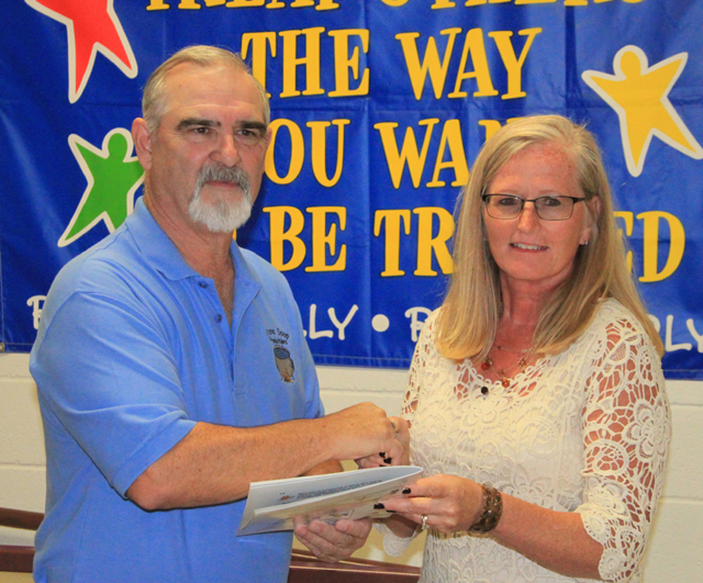 umpire, presents Rene’ Forsmann with the #1 stamped and autographed edition