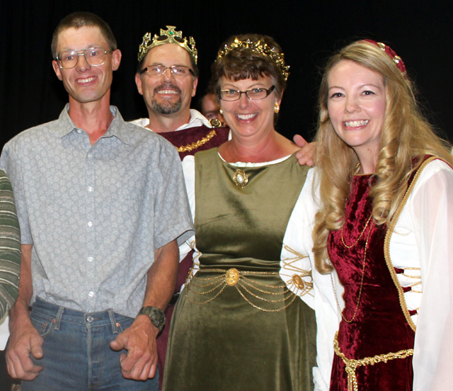 are Kevin and Kathy Rehder, M.C.’s and Julie Sonnen. Photo by Ned Waters.
