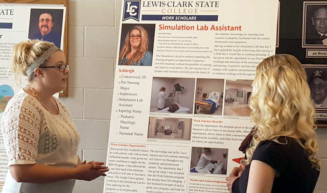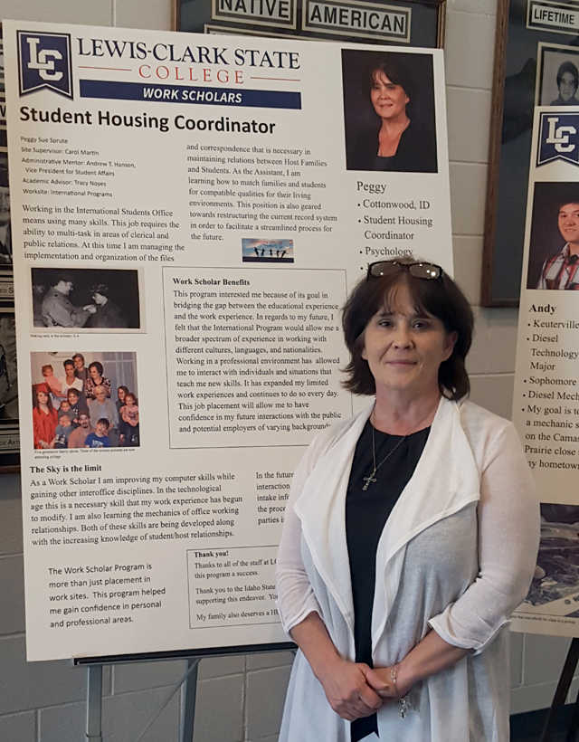 Peggy Sprute of Cottonwood with her storyboard outlining her work scholar job as a student housing coordinator. Photos provided by LCSC. |