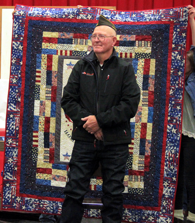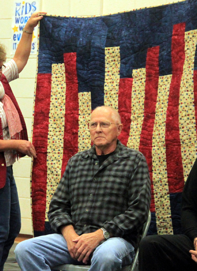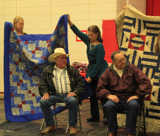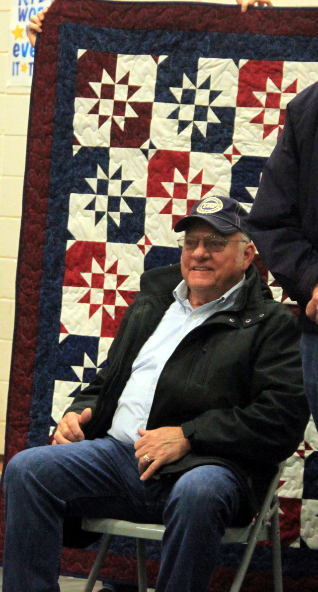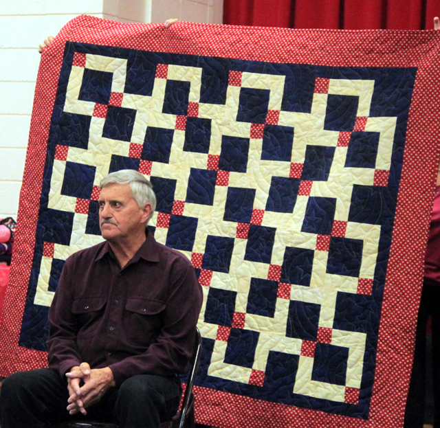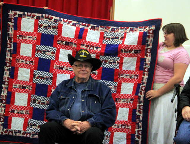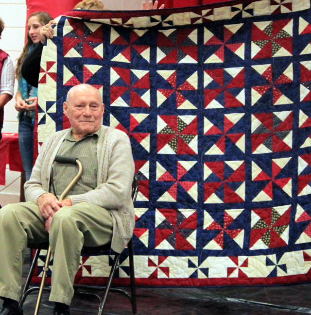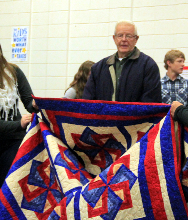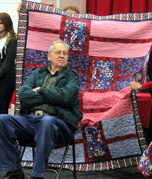 Jack Lilly is not from this area but his granddaugther, at right is a Prairie student and she made the quilt for her grandpa.