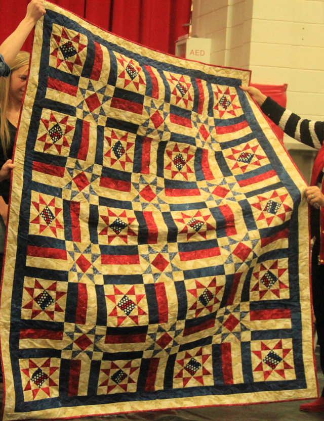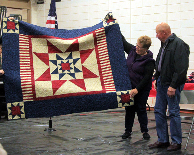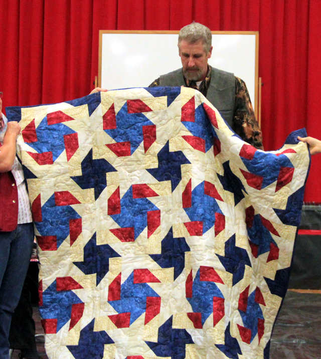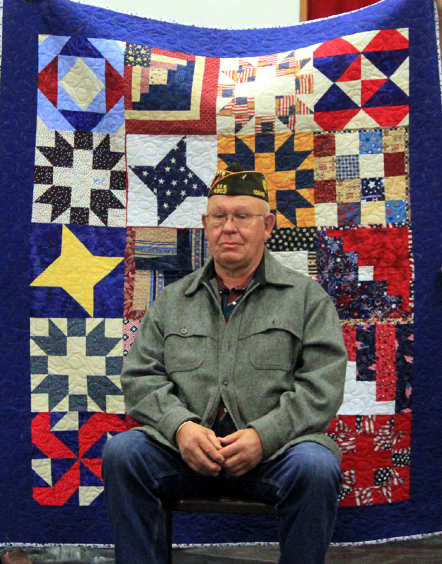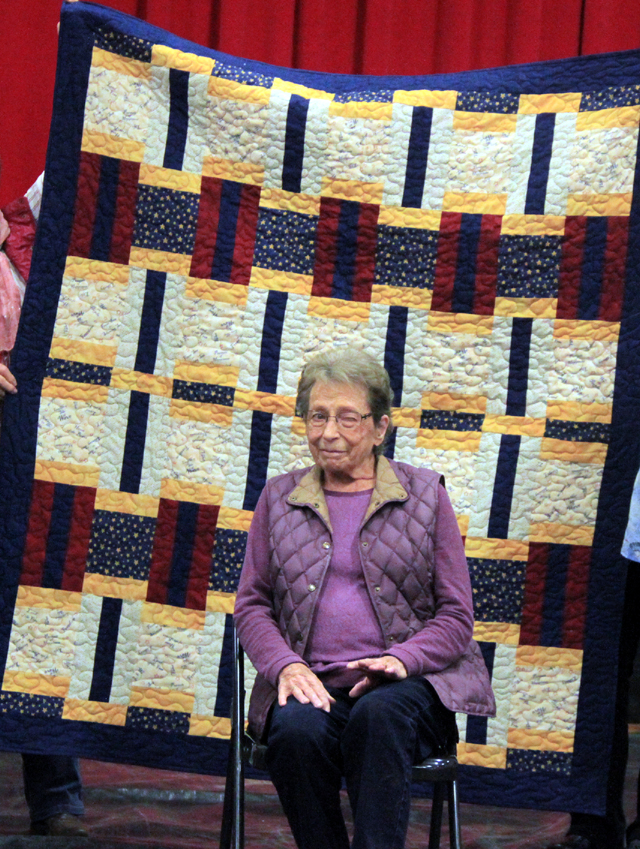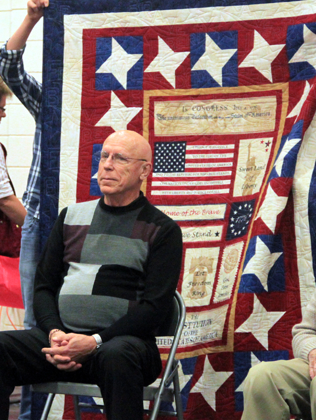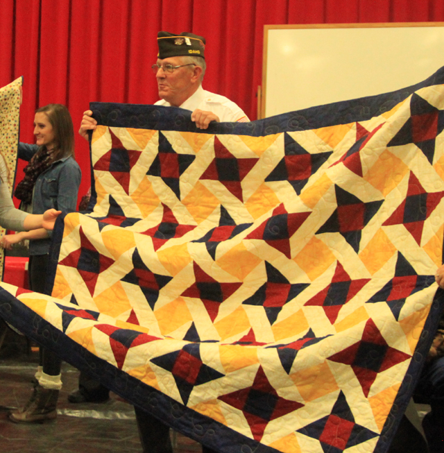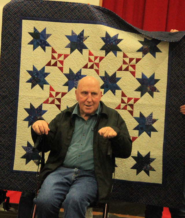 Jack Lilly is not from this area but his granddaugther, at right is a Prairie student and she made the quilt for her grandpa.