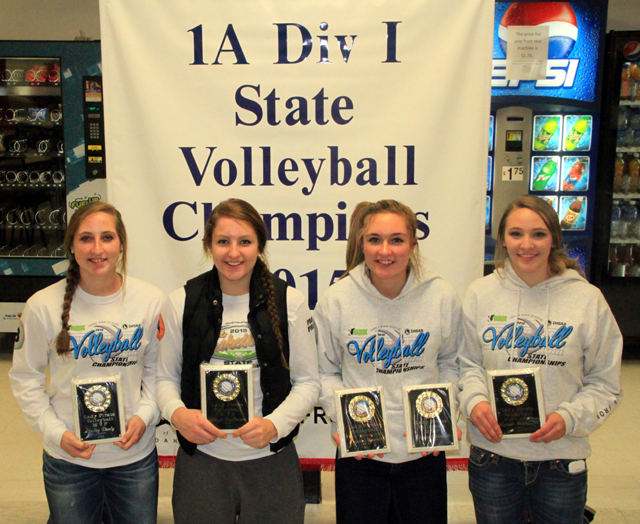 Award winners at the Volleyball banquet held last week are from left: Hailey Danly, co-most valuable; Shayla VonBargen, co-most valuable; Krystin Uhlenkott, co-most valuable and most inspirational and Mykaela McWilliams, most improved. Also announced at the banquet were the all-state tournament team selections. The 3 co-MVP's all made the first team while Mcwilliams and Chaye Uptmor were named to the 2nd team and Sarah Seubert was an honorable mention. Danly broke the school record for most aces in a season with 79 and for most assists in a season with 737. She also broke the record for most assists in a match with 64. VonBargen broke the season blocks record with 70. Uhlenkott broke the single match kills record with 31, just 1 ahead of VonBargen's 30 with both marks coming in the Butte County match at State. Uhlenkott also had the most kills on the seaon with 324, 6 ahead of VonBargen. Uptmor had the most digson the season with 273, 3 shy of the record she set last season. Uhlenkott was second with 239. VonBargen had the second most aces with 68. Mcwilliams had the second most blocks with 25 and Angel Wemhoff was a distant second for the season in assists with 56. PIRATES GIRLS BASKETBALL SCHEDULE FOR 2015-16 *indicates league game 24-Grangeville, there 2-JV at Grangeville, 7:30 p.m. 3-Potlatch, there*, 5 p.m. 4-Grangeville, here, Idaho County Shootout, V only, 7:30 p.m. 5-Troy, there, 1:00 p.m. 8-C.V., there*, ½ JV 10-Kamiah, there* 11-Moscow, here, C,JV,V, 4 p.m. 14-Lapwai, there* 15-Asotin, here, 4:30 & 6 9-Troy, here*, 1 p.m. (Quad) 12-Genesee, there*, 4:30 & 6 14-Lewiston JV, here 15-Asotin, there 16-Potlatch, here*, 1 p.m. 21-Lapwai, here* 25-C.V., here*, ½ JV 26-Kamiah, here* Feb. 1-12 -District at LCSC 11-State Play-In #1 TBA 13-State Play-in #2 TBA 18-20-State at Nampa |