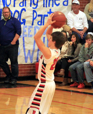 The Prairie Pirates trailed by 9 at the half but came back to beat Grangeville 47-41 in their season opener during the Idaho County Shootout Friday, Dec. 4 at Cottonwood. Prairie scored first when Terran Peery grabbed an offensive rebound and fed Jake Bruner for a lay-up but Grangeville answered with 5 straight points. Bruner tied it when he was fouled on a drive to the hoop and converted the 3-point play. Grangeville reeled off 6 straight but Prairie cut the lead to 1 on a basket by Bruner and a 3-pointer by Hunter Chaffee. Grangeville scored again to make it 10-13 at the end of the first quarter. A baseline jumper by Chaffee and a 3-pointer from the wing by Isaiah Shears gave prairie only their second lead of the half at 15-13. That lead lasted 30 seconds until Grangeville tied it with a pair of free throws. The Bulldogs took control the rest of the half as they outscored the Pirates 5-13 to take a 20-29 halftime lead. A 3 by Peery and 2 free throws by Brandon Higgins cut the lead to 4 early in the third quarter but Grangeville pushed the lead back to 7 at 27-34. Higgins scored on an inbounds play and Bruner scored with 5 seconds left to cut the deficit to 31-34 after 3 quarters. Grangeville scored to open the fourth but a layup by Higgins and a 3 by Chaffee tied the game at 36-all with 6:28 left to play. Grangeville’s Dillon Alder put the Bulldogs back on top with a free throw and a basket that made it 36-39 with 5:05 left. Bruner scored on a tip-in to cut the lead to 1 with 3:53 left and then Higgins hit the go-ahead 3-pointer from the wing. A defensive rebound by Bruner led to a driving lay-up by Peery that put Prairie up 43-39. Alder answered with a basket to cut the lead back to 2 with 32 seconds left Higgins inbounded the ball to Tyson Schlader who was to pass the ball to Bruner who was to streak towards the basket. Bruner got fouled and made both free throws to put Prairie up by 4 with 29 seconds left. Nine seconds later Bruner added another basket to give Prairie their biggest lead of the game at 47-41. That turned out to be the final score. Bruner had a double-double with 18 points and 13 rebounds and also added 4 assists, 3 steals and 4 blocked shots. Higgins scored 9 points, all in the second half, and had 4 steals and 3 assists. Chaffee came off the bench to provide an offensive spark with 8 points and had 7 rebounds. Peery scored 6, all in the second half, and had 7 rebounds, 4 assists and 2 steals. Shears scored 3 while Brandon Anderson scored 2 and Schlader scored 1. Austin Parks led Grangeville with 14 points while Alder had 13. Those two scored a combined 19 in the first half but were held to just 8 in the second half. Prairie was 17 for 58 from the field, 29%, and 8 for 18 at the line, 44%. Grangeville was 17 for 49 from the field, 35%, and 5 for 9 at the line, 56%. Prairie 10 10 11 16 -47 Grangeville 13 16 5 7 -41 Prairie-Peery 2-10, 1-2, 6; Shears 1-5, 0-0, 3; Higgins 3-12, 2-4, 9; Bruner 7-14, 4-9, 18; Hinkelman 0-3, 0-1, 0; Schlader 0-5, 1-2, 1; Chaffee 3-9, 0-0, 8; Schwartz 0-0, 0-0, 0; Anderson 1-1, 0-0, 2. 3-pointers-Chaffee 2, Peery, Shears, Higgins. Grangeville-Harris 2-12, 0-1, 4; Parks 5-13, 2-3, 14; Alder 6-9, 1-2, 13; Woods 1-5, 0-0, 2; Canaday 0-0, 0-0, 0; Key 2-4, 0-0, 4; Schumacher 1-4, 0-0, 2; Stokes 0-2, 2-3, 2. 3-pointers-Parks 2.