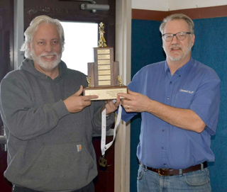 Some of the participants at the Chess Tournament held at Summit this past Saturday. Holding the trophy is overall winner George Watson. In the blue shirt at right is Sanford Staab, “The Chess Guy.” Photo provided by Sanford Staab.