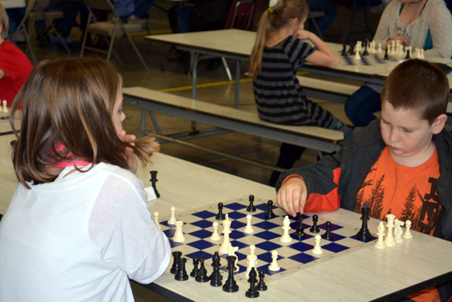 Rachel Sonnen and Thomas Rose during the Chess Tournament at Summit Academy this past Saturday.