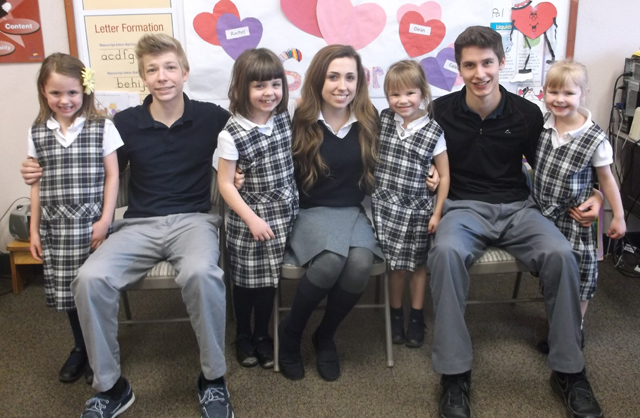 The Summit Kindergarten class hosted the Seniors for lunch last week. The students had pizza and spent the lunch hour visiting and getting to know each other better. Photo by Summit Academy The Summit Academy Patriots won 2 of 3 games this past week. They lost a non-league game at Lapwai 44-66 Tuesday, Feb. 2. Saturday, Feb. 6, they traveled to Logos where they won a league game 53-43. Finally on Monday, Feb. 8 they made up their postponed home game against Timberline by traveling to Weippe where they won 46-40 to complete an undefeated league schedule. Lapwai jumped out to a 10-20 lead by the end of the first quarter and extended that to 22-38 by halftime and 30-55 by the end of the third quarter. Tyler Krogh led the Patriots in scoring with 19 points While Dylan Krogh scored 8, Caleb Currier 7, Chris Osborne 7 and Dean Stubbers 4. The Summit JV won 50-32. Summit 10 12 8 14 -44 Lapwai 20 18 17 11 -66 Summit-D. Stubbers 1, 2-3, 4; D. Krogh 3, 0-0, 9; T. Krogh 6, 7-9, 19; J. Stubbers 0, 0-0, 0; Chmelik 0, 0-0, 0; Currier 3, 0-0, 7; Osborne 3, 0-1, 6. 3-pointers-D. Krogh 2, Currier. Lapwai-T. Miles-Williams 3, 1-2, 7; Henry 6, 3-3, 15; I. Miles-Williams 5, 0-0, 11; Shawl 3, 1-1, 7; Taylor 4, 0-2, 9; Kipp 0, 0-0, 0; Peters 1, 0-0, 2; Wheeler 0, 0-0, 0; Miles 1, 2-2, 4; Ortiz 0, 0-0, 0; Sobotta 3, 0-0, 8; Lone Bear 0, 3-3, 3; Mitchell 0, 0-0, 0. 3-pointers-Sobotta 2, Taylorm I. Miles-Williams. Summit led just 11-9 after one quarter and 29-25 at the half. The margin stayed at 4 after the third quarter, 40-36. Summit then outscored the Knights 13-7 in the fourth to finally get some separation. Tyler Krogh again led the scoring with 21 points with Osborne chipping in 11 points and 9 rebounds. Jake Stubbers scored 7, Patrick Chmelik 6, Dylan Krogh 5 and Currier 3. Chmelik led the rebounding with 12 and added 4 assists. Logos won the JV game 27-33. Summit 11 18 11 13 -53 Logos 9 16 11 7 -43 Summit-D. Stubbers 0, 0-0, 0; T. Krogh 7, 3-4, 21; D. Krogh 2, 0-0, 5; K. Stubbers 3, 1-2, 7; Chmelik 3, 0-2, 6; Wassmuth 0, 0-0, 0; Currier 1, 0-0, 3; Osborne 5, 1-2, 11. 3-pointers-T. Krogh 4, D. Krogh, Currier. Logos-Engerbretson 5, 3-9, 15; Bradley 3, 3-3, 12; M. Whitling 0, 1-2, 1; Ahmann 0, 0-0, 0; Handel 0, 0-0, 0; Li 0, 0-0, 0; Costello 4, 0-0, 11; C. Whitling 1, 3-6, 5. 3-pointers-Bradley 3, Costello 3, Engerbretson. The game was a makeup for the home game originally scheduled for Jan. 23. Summit led 12-9 after the first quarter and extended the lead to 27-18 by halftime. They then held off the Spartans through the second half as Timberline shaved 2 points off the lead in the third quarter and 1 more in the fourth. Tyler Krogh topped the Patriots in scoring with 15 points, edging out Osborne who had 14 with 12 rebounds. Jake Stubbers scored 6, Chmelik 4, Currier 3 and Dean Stubbers and Dylan Krogh 2 each. Chmelik added 9 rebounds. Summit completes their regular season schedule with a perfect 12-0 league record and are 15-3 overall. They get a first round bye in the District Tournament and their next game will be Wednesday, Feb. 24 when they will play the lowest seeded survivor of the play-in games. Summit also won the JV game 37-23. Summit 12 15 10 9 -46 Timberline 9 9 12 10 -40 Summit-D. Stubbers 1, 0-0, 2; T. Krogh 7, 1-3, 15; D. Krogh 1, 0-4, 2; J. Stubbers 3, 0-0, 6; Chmelik 2, 0-0, 4; Wassmuth 0, 0-0, 0; Currier 1, 1-2, 3; Osborne 6, 2-2, 14. 3-pointers-none. Timberline-Bonner 0, 0-0, 0; C. Brouwers 2, 1-2, 5; Lineberry 9, 2-2, 20; Willis 0, 0-0, 0; Morris 0, 0-0, 0; C.J. Brouwers 5, 0-0, 13; Cochrell 1, 0-4, 2; Jared 0, 0-1, 0; Reuben 0, 0-0, 0; Rockwood 0, 0-0, 0; Willett 0, 0-0, 0. 3-pointers-C.J. Brouwers 3. SUMMIT BOYS BASKETBALL SCHEDULE FOR 2015-16 2-C.V., there, no JV, 7 p.m., lost 36-56 7-Nezperce, there*, won 52-13 9-Salmon River, here, Prairie Auxiliary Gym, won 54-40 11-Deary, there*, won 45-37 12-Colton, here, Prairie Auxiliary Gym, 2 p.m., won 68-64 in overtime 16-Timberline, there*, postponed due to weather, no makeup date set yet. 9-Logos, at Highland, 3 p.m., won 54-52 14-Deary, here*, Prairie Auxiliary Gym, won 65-50 16-Highland, there*, 4:30 p.m., won 58-38 19-Nezperce, there*, won 67-26 21-Kendrick here*, won 57-50 26-Kendrick, there*, won 50-49 27-at Timberline, makeup game for Dec. 16, won 61-58 30-Highland, home game at Highland, 4:30 p.m.*, won 65-40 6-Logos, there*, won 53-43 8-home game at Timberline, makeup of Jan. 23 postponement, won 46-40 *League game |