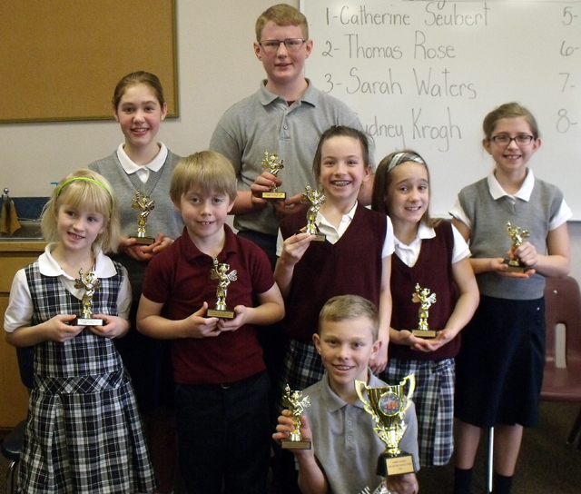 Summit Academy held their all-school spelling bee on Friday, February 19th. First through eighth grade sent a representative to the bee. The winner was 7th grade student Lane Wassmuth. Lane will represent Summit at the regional spelling bee held in Lewiston in March. Photo by Summit Academy. SUMMIT BOYS BASKETBALL SCHEDULE FOR 2015-16 2-C.V., there, no JV, 7 p.m., lost 36-56 7-Nezperce, there*, won 52-13 9-Salmon River, here, Prairie Auxiliary Gym, won 54-40 11-Deary, there*, won 45-37 12-Colton, here, Prairie Auxiliary Gym, 2 p.m., won 68-64 in overtime 16-Timberline, there*, postponed due to weather, no makeup date set yet. 9-Logos, at Highland, 3 p.m., won 54-52 14-Deary, here*, Prairie Auxiliary Gym, won 65-50 16-Highland, there*, 4:30 p.m., won 58-38 19-Nezperce, there*, won 67-26 21-Kendrick here*, won 57-50 26-Kendrick, there*, won 50-49 27-at Timberline, makeup game for Dec. 16, won 61-58 30-Highland, home game at Highland, 4:30 p.m.*, won 65-40 6-Logos, there*, won 53-43 8-home game at Timberline, makeup of Jan. 23 postponement, won 46-40 24-26-District at LCSC, Beat Deary 50-37, to play Kendrick at 7:30 p.m. for District title. Loser plays Deary-Logos winner Friday at 6 p.m. for 2nd place to state *League game |