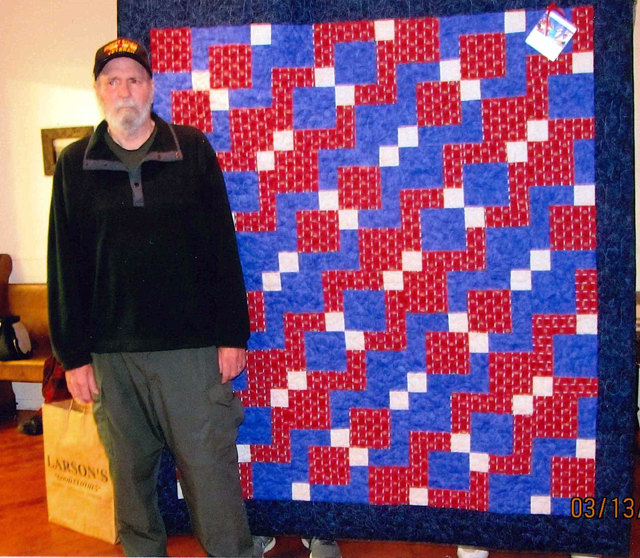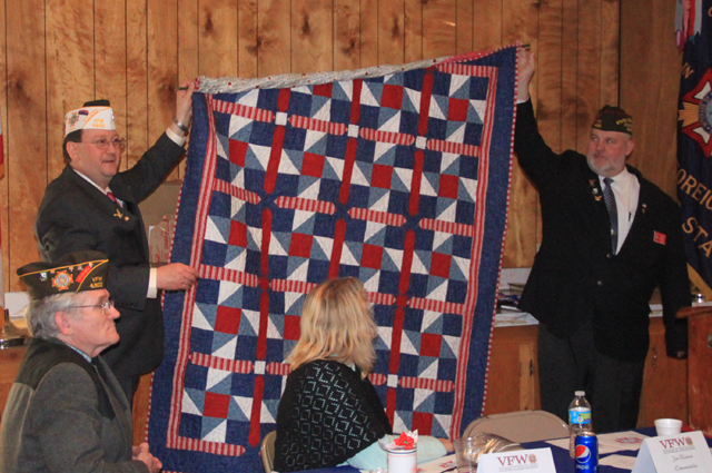 Roger Burgess received a Quilt of Valor at the VFW Awards Banquet. Photo by Shirley Baerlocher.