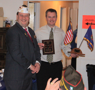 Todd Nygaard received the teacher of the year award from VFW Post 4902. Post Commander Joe Riener presented all the awards. |