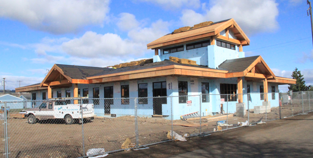 as the roof was being shingled Tuesday morning. This photo shows how the