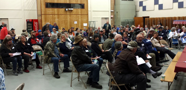 The Idaho County Democratic caucus was held at the Grangeville High School on Tuesday, March 22. Doors opened at 5:00 PM to electors, observers and media. At promptly 6:00 PM, the doors were shut and after all of the participants were registered, the caucus began. The ICDP Chairman, Bill Farmer of Cottonwood introduced Michelle Perdue, Grangeville, Caucus Captain. After welcoming all in attendance, Perdue handed the caucus over to Linwood Laughy of Kooskia to conduct the caucus process that ended with electing delegates to the Idaho State Democratic Convention to represent Idaho County. 142 people from Pollock to Glenwood participated in the caucus, pledging their support for their candidate or entering undecided. After two rounds of speaking, an open debate on the floor and mingling among individuals, ballots were filled out. Sub-caucus chairs were Jacqueline Zumalt, Grangeville, Hillary Clinton campaign and Mary Ann High, Grangeville, Bernie Sanders campaign. Perdue was sub-caucus chair for the undecideds. There were no supporters for Candidate Rocky de la Fuero. The final ballot count decided the division of the four delegates from Idaho County, three delegates for Sanders and one for Clinton. The delegate list includes Clinton delegate, Nan Miguel, Grangeville and alternate Lou Ann McCune, Pollock. Sanders delegates and alternates are Janet Barany, White Bird; Jared Reynolds, Grangeville; Linda Hagedorn, Pollock; Taylor Cash, Cottonwood; Liz Clark, Clearwater; and Bonnie Shonefeld, Kooskia. The Idaho State Democratic Convention will be held in Boise, June 17th through the 19th. In total, 384 delegates from throughout Idaho, with their alternates, will attend the convention. From Idaho, 24 delegates and two alternates will attend the National Democratic Convention, the week of July 25 in Philadelphia, Pennsylvania, to nominate the Democratic candidates for President and Vice President of the United States of America. To learn more about the Idaho County Democrats, visit their Facebook page, call Perdue at 208 983 3763, go to Idaho County Democrats.org or attend the next monthly meeting, April 11 at the Grangeville Senior Center located on the Truck Route. Monthly meetings are held the second Monday of most months. A June picnic is scheduled for June 12th at the Cottonwood City Park. September 24th the ICDP will hold their election year dinner, location to be announced.