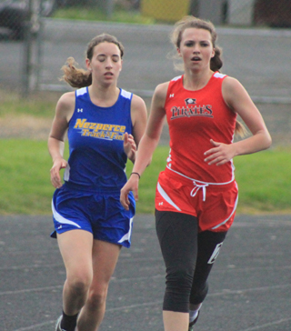 Mykaela McWilliams was part of 4 event wins to lead the Prairie girls track team to the team title at an 8-team meet at Kamiah Friday, April 22. McWilliams won the 100 hurdles in a season best time of 16.54, the long jump at 1511½ and was part of the winning 4x200 and 4x400 relays. Laney Uhlenkott was also part of those two winning relays and won the 200 meter dash in 28.88. She had a chance to duplicate McWilliams feat but scratched out of her fourth event.