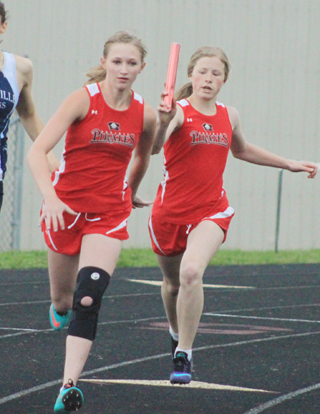 The 4x200 team of Theresa Wemhoff, Uhlenkott, Jordyn Higgins and McWlliams had a time of 1:58.98 while the 4x400 team of Higgins, McWilliams, Chaye Uptmor and Uhlenkott had a time of 4:23.69. Uptmor won the 800 in a time of 2:34.05 and was second in the 1600 in 6:04.85. Kristyne Krogh was second in the 3200 in 13:31.26, third in the 1600 in 6:12.38 and 7th in the long jump at 131½. Wemhoff placed second in the 100 in 14.13 and second in the 200 in 31.07. Higgins was second in the 800 in 2:44.47 and fourth in the long jump at 137. Krista Hess was third in the 200 in 31.10 and 8th in the long jump at 1210½. Madison Ulmer was third in the discus at 835 and 14th in the shot put at 22½. Maria Schmidt was 9th in the 100 in 15.07 and 6th in the 200 in 32.52. Bailie Gehring was 6th in the discus at 770 and 13th in the shot at 229. Emma Gehring was 8th in the discus at 710 and 8th in the shot put at 249 The 4x100 relay team of Wemhoff, Hess, Krogh and Schmidt placed second in 58.88. For the boys team Sean Spencer was involved in both of their event wins as he placed first in the 1600 in 5:04.59 and the 4x200 relay team of Raice Dalgleish, Spencer, Ray Zhang and Luke Wemhoff placed first in 1:41.14. Spencer also placed second in the 400 in 55;68 and 7th in the long jump at 174. Wemhoff was also third in the 400 in 56.54, 8th in the triple jump at 346 and 10th in the long jump at 167. Grant Gehring was second in the 1600 in 5:29.85; third in the 3200 in 11:53.49 and 7th in the 300 hurdles in 55.50. Caleb McWilliams was 3rd in the 1600 in 5:30.61 and 16th in the shot at 299½. Kevin Tillinghast was 6th in the 1600 in 5:43.16 and 8th in the 3200 in 12:44.16. Andrew Everson was 4th in the discus at 1049 and 9th in the shot at 356. Carson Schmidt was 5th in the discus at 1041, 7th in the shot at 360 and 14th in the 100 in 13.34. Isaiah Shears was 6th in the discus at 1006, 9th in the 100 in 13.02 and 12th in the shot put at 320. Dalgliesh was 7th in the 400 in 59.60 and 12th in the long jump at 161. Zhang was 10th in the 200 in 26.94 and 9th in the 400 in 1:01.22. Drew Dinning was 17th in the 200 in 20.41 and 21st in the discus at 724. Brandon Latimer was 18th in the 200 in 31.08; 19th in the 400 in 1:08.82 and 23rd in the 100 in 14.12. Tucker Hibbard was 17th in the discus at 778 and 22nd in the shot at 2610½. The 4x100 team of Dinning, Hibbard, McWilliams and Schmidt was 9th in 58.82. As a team the boys placed 4th with 83 points.