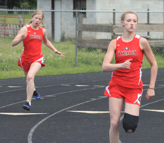 The Prairie Lady Pirates track team took the first place team trophy at the White Pine League Meet Saturday, April 30 at Kamiah. Mykaela McWilliams won three individual events while Chaye Uptmor won the 800 with a new school record time and Laney Uhlenkott won the 200. McWilliams won the 100 hurdles in 17.19, the 300 hurdles in 48.59 and the long jump in 161. Uptmor won the 800 in 2:24.70 breaking Katie Jo Forsmann school record of 2:26.6 set in 2001. Uptmor was also second in the 1600 in 5:59.80. Uhlenkott won the 200 in 28.29 and was also 3rd in the 400 in 1:05.20. Theresa Wemhoff took 2nd in the 100 in 14.57 and was 8th in the 200 in 33.34. Kristyna Krogh was 2nd in the 3200 in 13:26.88, 4th in the 1600 in 6:02.31 and 12th in the long jump at 126½. Jordyn Higgins was 4th in the 800 in 2:39.91 and 16th in the long jump at 119. Krista Hess was 6th in the 200 in 32.45 and 18th in the long jump at 116. Maria Schmidt was 7th in the 500 in 1:13.79 and 18th in the 100 in 15.62. Bailie Gehring was 9th in the discus at 800 and 15th in the shot at 227. Emma Gehring was 10th in the discus at 252 and 13th in the discus at 740. Madison Ulmer was 11th in the discus at 7510 and 13th in the shot at 2210½. The 4x400 relay team of Higgins, Uptmor, Uhlenkott and McWilliams placed 1st with a time of 4:30.25. The 4x200 team of Wemhoff, Hess, Higgins and Uhlenkott placed 2nd in 1:58.85. The 4x100 team of Wemhoff Hess, Krogh and Schmidt placed 4th in 59.30. The boys team placed 8th out of 12 teams with 31 pts. Sean Spencer was the top individual placer with a 4th in the 1600 in 4:54.11. He was also 5th in the long jump at 1711. Luke Wemhoff was 5th in the 400 with a time of 56.26 and 11th in the long jump at 170. Grant Gehring was 7th in the 3200 in 11:51.43, 8th in the 1600 in 5:20.92 and 10th in the 300 hurdles in 54.04. Carson Schmidt was 7th in the shot put at 368 and 8th in the discus at 1070. Kevin Tillinghast was 8th in the 3200 in 13:28.30 and 16th in the 1600 in 5:41.13. Raice Dalgliesh was 9th in the 400 in 57.74. Andrew Everson was 11th in the shot at 345 and 13th in the discus at 910. Caleb McWilliams was 16th in the shot at 3010½ and 12th in the 1600 at 5:22.64. Brandon Latimer was 20th in the 400 in 1:08.61, 32nd in the 200 in 30.00 and 41st in the 100 in 13.88. Tucker Hibbard was 21st in the discus at 751 and 23rd in the shot at 273½. Drew Dinning was 27th in the discus at 5811 and 45th in the 100 meter dash in 14.03. Ray Zhang was 27th in the 100 in 13.14. The 4x200 relay team of Zhang, Dalgliesh, McWilliams and Wemhoff was third in 1:41.47. The 4x400 team of Zhang, Dalgliesh, Spencer and Wemhoff was also third in 3:56.04. The 4x100 team of Latimer, Dinning, McWilliams and Schmidt was 10th in 55.19.
