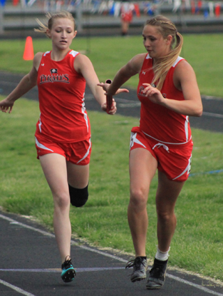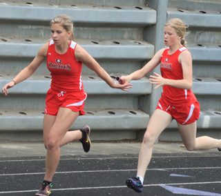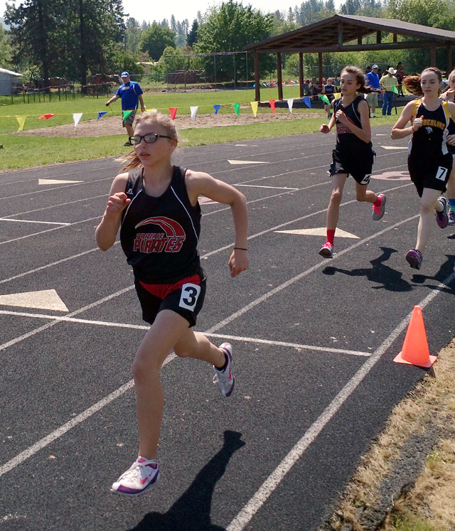 Sierra McWilliams, left, and Jayey Rambo, middle, both broke the jr. high 1600 meter record. McWilliams now holds it at 6:07.0. Photo by Glenn Poxleitner. PIRATES TRACK SCHEDULE FOR 2016 MAY 20-21-Middleton High School |