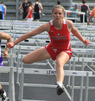 Mykaela McWilliams won 2 events and was second in two others at the District II Meet of Champions held at Sweeney Track in Lewiston Thursday, May 5. McWilliams won the 100 meter hurdles in 16.70 and the 300 meter hurdles in 48.92. She also finished 2nd in the long jump at 15’10” and anchored the second place 4x400 relay with Jordyn Higgins, Chaye Uptmor and Laney Uhlenkott which had a time of 4:25.75. Uptmor had a third place finish in the 800 in 2:32.56 and was fourth in the 1600 in 5:46.15. Uhlenkott was third in the 400 in 1:04.73 and fifth in the 200 in 29.15. Higgins was 9th in the 800 in 2:44.01. Kristyna Krogh was 7th in the 3200 in 13:21.42 and 9th in the 1500 in 6:03.49. Theresa Wemhoff was 12th in the 100 in 14.53. Madison Ulmer was 13th in the discus at 75’3”. The 4x200 team of Wemhoff, Uptmor, Higgins and Uhlenkott placed 7th in 2:00.86. For the boys team Lucas Wemhoff placed 10th in the 400 in 56.22. Sean Spencer was 11th in the 1600 in 4:52.36. Grant Gehring was 13th in the 3200 in 11:36.12. The 4x200 relay team of Ray Zhang, Raice Dalgliesh, Spencer and Wemhoff was 7th in 1:42.66. The same fourth made up the 4x400 team which also placed 7th in 3:58.10.