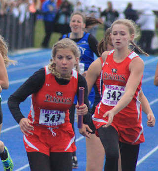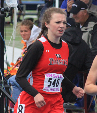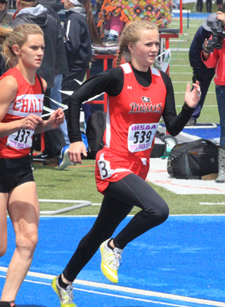 Chaye Uptmor is a state champion after winning the 800 meter run at the 1-A State Track Meet. The meet was held May 20-21 at Middleton High School. Uptmor won the race in 2:27.87. She also earned 2 other individual medals with a 5th in the 3200 at 12:37.98 and a 6th in the 1600 in 5:52.07. The 3200 time was a personal best. She helped Prairie to a 4th place team finish and a state trophy. Prairie had 39 points as a team. Also earning 3 individual state medals was Mykaela McWilliams. She finished third in both hurdles races with times of 16.59 in the 100 hurdles and 47.83 in the 300 hurdles. She also placed fifth in the long jump with a mark of 15’2”. Uptmor and McWilliams also earned a fourth medal as part of the 4x400 relay team which placed fifth with a time of 4:23.38. Jordyn Higgins and Laney Uhlenkott were also on the 4x400 relay. In other girls events Uhlenkott was 9th in the 400 meter prelims in 1:05.30, just missing out on making the finals. She was also 15th in the 200 prelims in 28.95. Higgins was 9th in the 800 meter run with a time of 2:36.51. Kristyna Krogh was 13th in the 3200 in 13:38.96 and 15th in the 1600 in 6:04.96. The 4x200 team of Theresa Wemhoff, Higgins, Krista Hess and Uhlenkott was 7th in 1:57.86. Isaiah Shears, in only his second discus competition, took 10th place with a personal best of 127’0”.