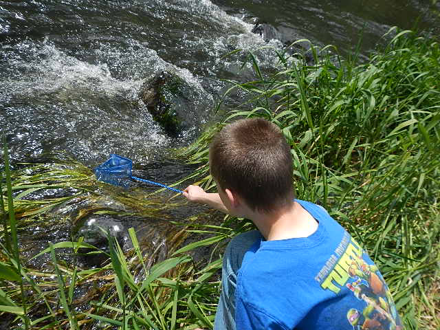 A youngster releasing steelhead fingerlings into Lawyer's Creek. Photos provided by Lewis Soil Conservation District. |